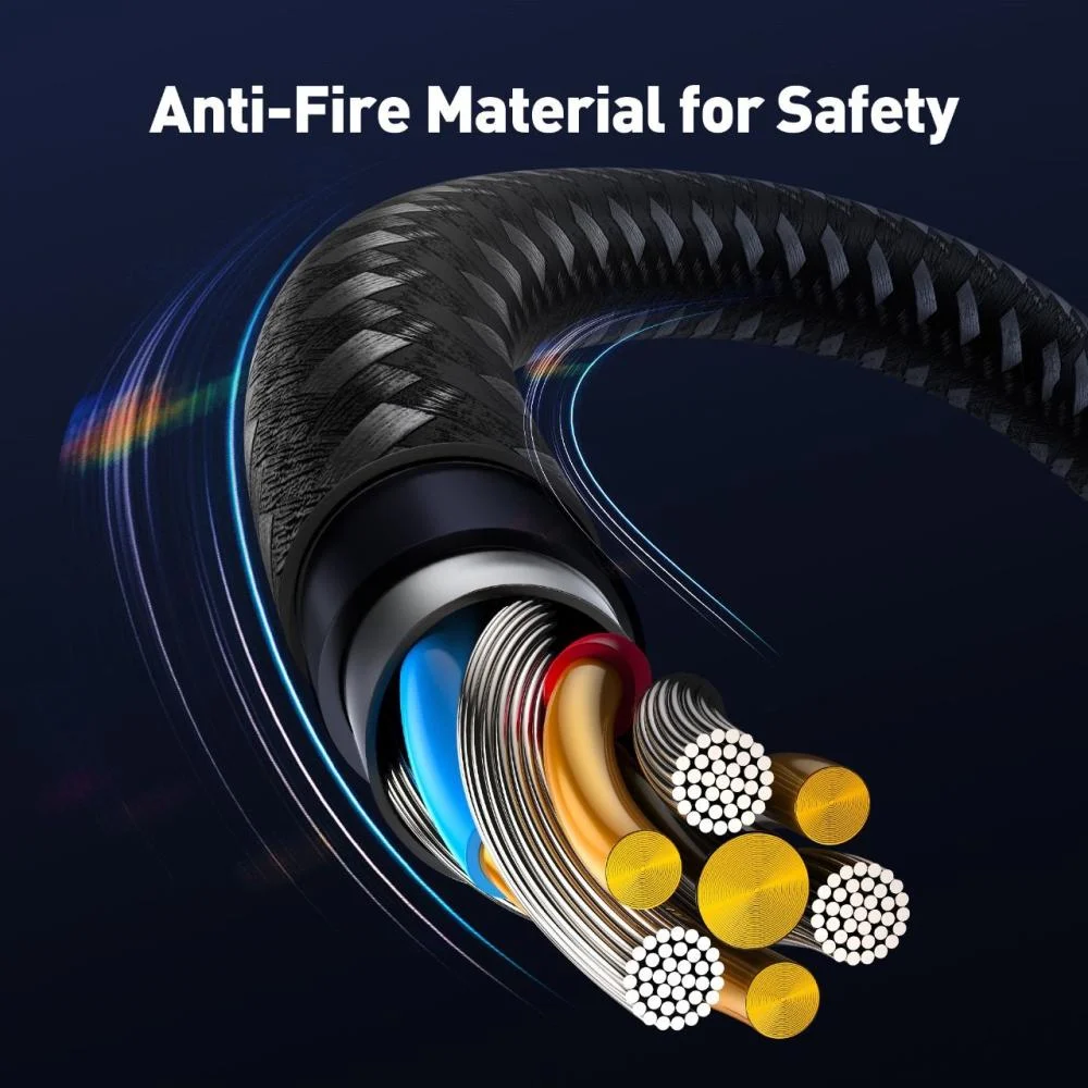 مصمم بطبقة خارجية من النايلون المضفر، مما يمنحه متانة إضافية وقدرة على تحمل الاستخدام الكثيف. يضيف التصميم القماشي لمسة أنيقة، إلى جانب مقاومته للتآكل والتشابك، مما يجعله يدوم لفترة أطول من الكابلات العادية.