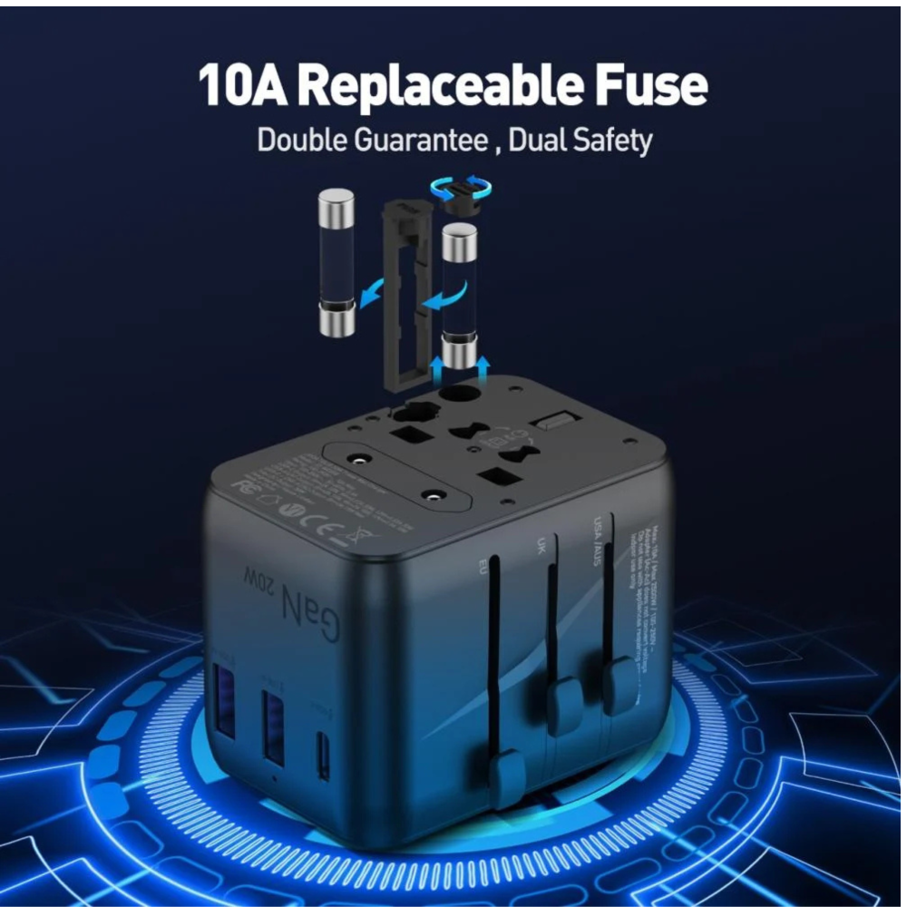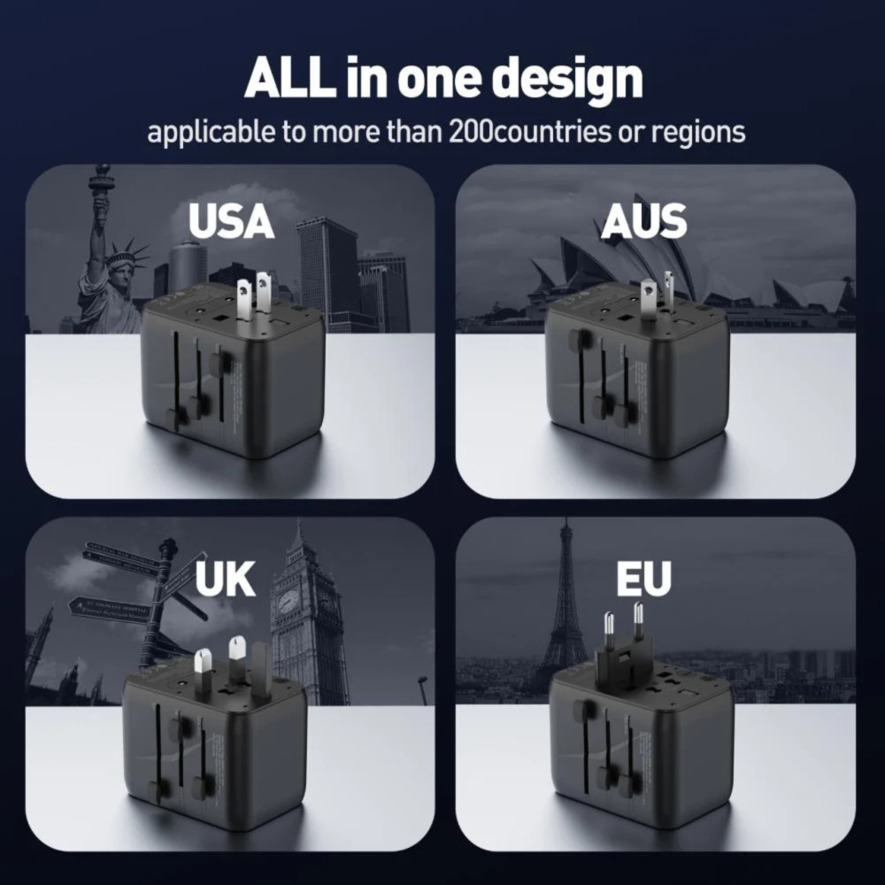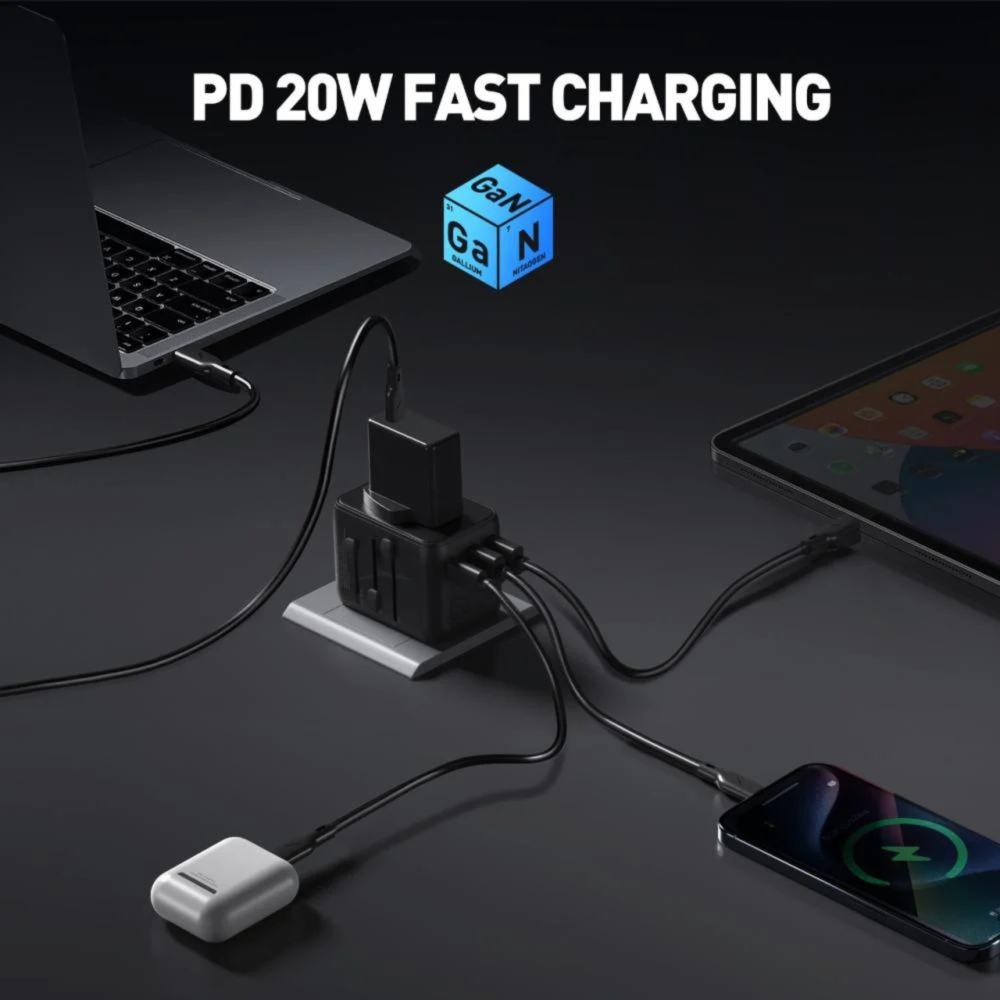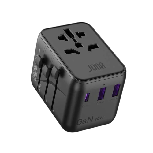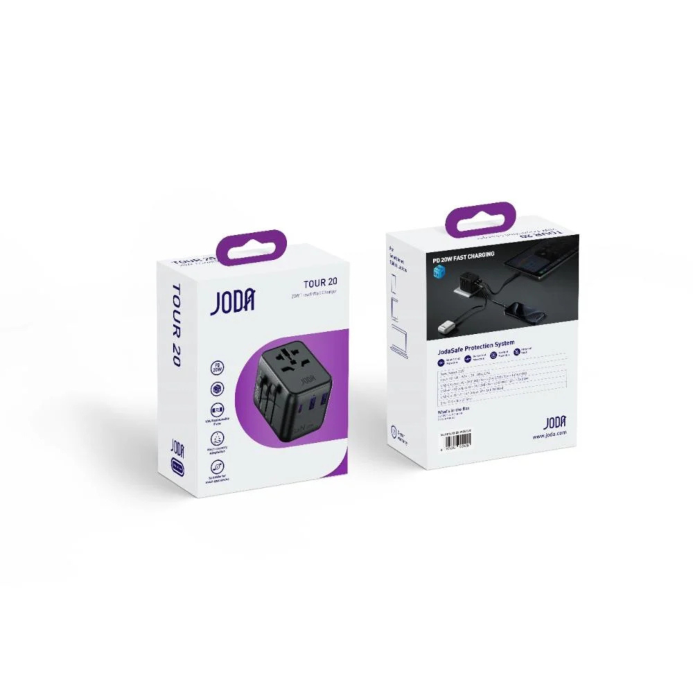 تمتع بشحن سريع وفعال أثناء السفر مع فيش السفر JODA المصمم خصيصًا لتلبية احتياجاتك المتنقلة. يوفر هذا المحول تصميمًا أنيقًا ومضغوطًا، مع ثلاثة منافذ للشحن—منفذين USB ومنفذ Type-C—ليتيح لك شحن عدة أجهزة في وقت واحد. يتميز بتقنية الشحن السريع بقدرة 20 واط لضمان أداء مثالي.