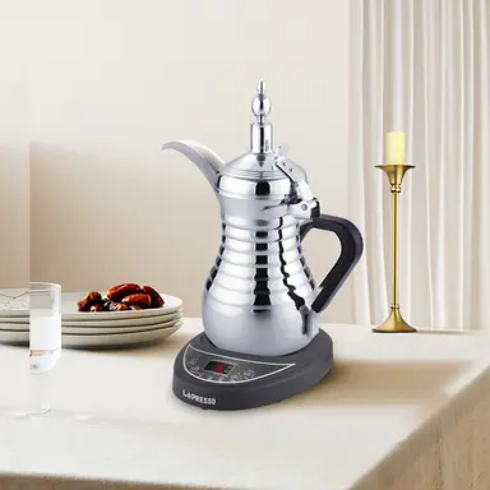 تتيح لك دلة القهوة السعودية كهربائية صنع القهوة السعودية التقليدية دون الحاجة إلى سابق معرفة بفن تحضير القهوة، دلة قهوة بتصميم عربي مميز تضيف لمسة جميلة وجذابة لاي سطح توضع عليه ، تأتي دلة قهوة كهربائية مع غلاية من الستانلس ستيل وقاعدة سخان مع شاشة رقمية سهلة الاستخدام والتنظيف ، دلة كهربائية من شركة ليبريسو لأداء عالي الكفاءة